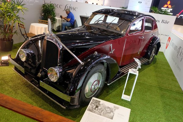 Ez itt egy C25 Aérodyne, nem replika (mint sok másik), hanem eredeti autó. Hathengeres, háromliteres a motorja, s hatfokozatú(!), előválasztós nyomatékváltója van. 1935-ben készült, akkor pedig még a hidraulikus négykerékfék is nagy újdonságnak számított.