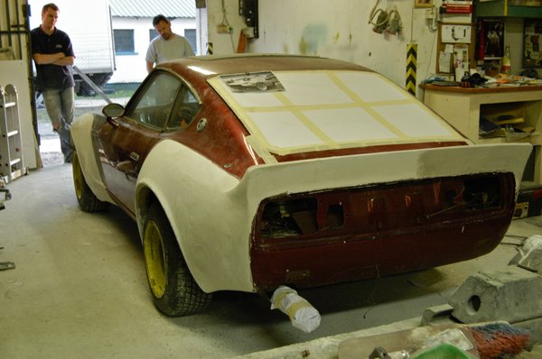 A képen azt látjuk, hogy egy mogyóródi műhelyben elindul a műanyag héjazat ősmintájának készítése, hogy aztán végül heroikus szenvedés és őrületes kalandok után végül sose kerüljön a kész autóra. Így nézett ki (autó nincs alatta):