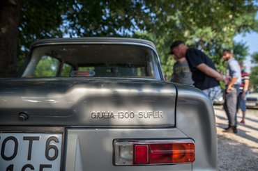 Volt csinos Skoda, Ezeröcsi, Corvette C3, világjáró W108-as Merci tökéletes akcesszoárokkal, és egy csomó egyéb finomság, de aztán, hát, szóval megláttuk ezt az Alfa Giulia Supert. Ami egyszerűen pazar. A harákoló, ordító, visszahörgő, dupla weberes DOHC motor. A kiállása. A bele. Ahogy ömlik belőle az olcsó olasz férfiparfüm és az ólmozott benzin szaga. Mármint képletesen. És, mint mondtam, ez nem tenyésszemle. Nem restaurálás-minőséget, eredetiséget vagy vételárat néztünk, hanem a pulzusunkra tett ujjbeggyel figyeltük, hogy mennyire kéne. Ez az Alfa, ez nagyon kellett volna mindkettőnknek.