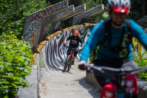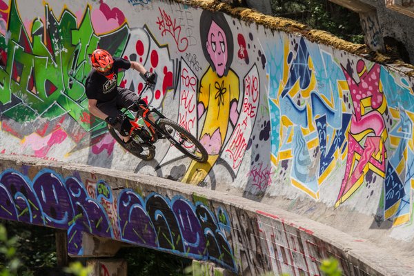 Nem bírtuk ki, hogy bringával ne guruljunk le rajta, állítólag 60-as tempót lehet elérni, ami nem olyan drámai, viszont nagyon közel vannak a falak, és a döntött kanyarok is problémásak, hiszen a sok réteg grafiti borzasztóan csúszik. Ennek ellenére a problémát megoldottuk, rég volt ennyire maradandó gurulásunk.