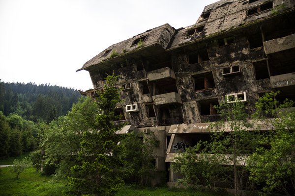 A legtöbb országban, ahol elhagyott helyeket kajtattunk, buktuk a bulit, hiszen ezeket gondosan elzárják és őrzik. Nem így Boszniában: turisták sétálnak fel, fotózkodnak, így, hogy a fenyőerdő közepén telefújták a félcsövet graffitivel, még igazából látványos is. Nem tudom, mi az ország szándéka vele, de ez így a parlagon heverve is ütős.