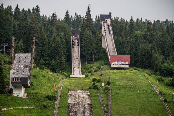 A háború alatt persze ez is új szerepet kapott, mesterlövészek használták lőállásnak. Kísérteties a teljesen lefosztott, kibelezett épület, ami fémből van, azt elvitték, így a cirka 15 méter magas torony is, amelyben a lépcsőházban korlátok nélkül kéne mászkálni. Így maradt maga a sánc, ami olyan meredek, hogy a műanyag talpú SPD-s bringás cipőben nem tudtam felmenni. A pálya alatti egykor arénában most játszótér van, pár suhanc focizik. Elég elképzelhetetlennek tűnik, hogy valaha is a működhet még, de mementónak és figyelmeztetésnek így is jó. A pálya tövében, a dobogón ücsörögve értettük meg, mi a rémisztő az egészben: a háború előtt alig 8 évvel ez az ország még simán összehozott egy olimpiát, aztán egy villanás alatt a modern történelem egyik legvéresebb konfliktusa bontakozott ki.