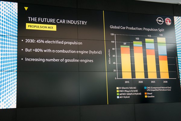 A cég vezetői 2020-ra ígérnek négy elektromosított autósorozatot, a Corsából biztosan lesz például tisztán elektromos verzió. 2024-re pedig az összes típusból lesz már elektromosított változat, bár ez ügyes megfogalmazás, lehet hibrid is. Az EMP2 platform nagy hátrányára rákérdezett valaki, hogy terveznek-e összkerekes verziót, de a választ leginkább úgy lehetett értelmezni, hogy csakis tölthető hibrid formájában: azaz hátulra (is) tesznek villanymotort, ettől lesz összkerekes. Az is biztos, hogy a Vivaróból is lesz elektromos hajtású kivitel.
