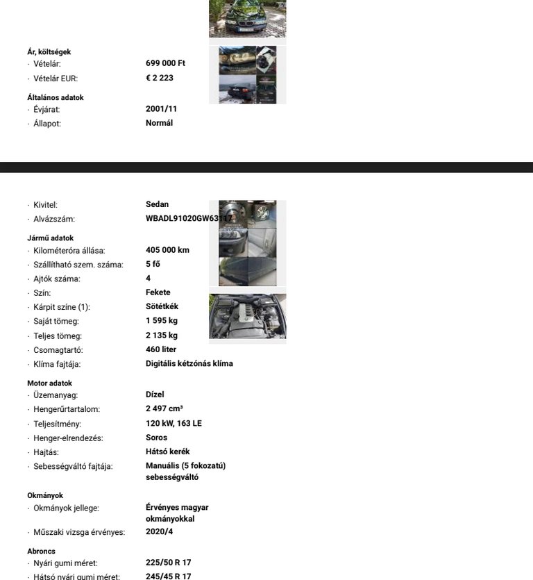László utólag úgy látja, nem volt elég figyelmes, amikor a vevők az orra alá tolták a saját papírjukat, ezért nem vette észre, hogy a futásteljesítmény rovatban nem a valós, akkor éppen 404650 kilométer szerepelt, hanem százezerrel kevesebb. Ezek után még meglepőbb volt, amikor június elején, vagyis két héttel az átadás után kiszúrta egykori autóját a Hahun, ahol sem a rozsdásodó küszöbökről, sem a zörgő lendkerékről nem írtak, sőt, az autót megkímélt állapotúként jellemezték, és a hirdetés szerint a BMW csak 285 ezer kilométert tett meg.