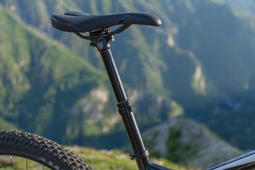 Két dologtól tud igazán sokoldalú lenni egy ilyen gép, az egyik a levegős futómű: a rugóstagot a Rockshox szállítja (Monarch RT3), a villa pedig egy Manitou Minute Pro. Ezekben nincs tekercsrugó, az előfeszítést levegőráfújással kell beállítani, viszont a mozgásuk két fokozatban zárható. Ez azért jó, mert az emelkedőn nem a csillapítás pumpálgatása emészti fel az erőnket, hanem a pedálozás, így lényegesen jobb a hajtáshatékonyság. A másik komolyan hasznos kiegészítő a süllyeszthető nyeregcső, ez olyan mint egy irodaszék: egy gombot lenyomva, pusztán a testsúllyal lenyomható, viszont a nyeregből kiállva ugyanezzel a gombbal kiemelhető.