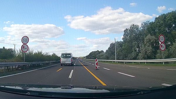 A minap rögzített fedélzeti videón láthatják, hogy a beszűkített sávok ellenére - ahol két kisteherautó sem fér el egymás mellett biztonságosan - a belső sávban érkező járművek saccolt sebessége elérte a 100-110 km/órát. Volt közöttük furgon és vontató is, azaz nem csak a sportautók hajtottak túl gyorsan. Ráadásul - ami a filmen nem is látszódik - a mögöttem érkező kamionos folyamatosan villogott rám, hogy gyorsítsak.
