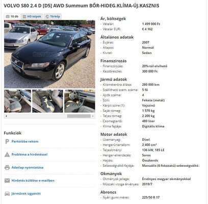 Vissza a mába. A mostani hirdetésben szereplő Volvo S80 magyarországi autó, K-val kezdődik a rendszáma, mint akkoriban mindennek, ezért azt gondolhatnánk, hogy biztosabb vétel, mint a kintről mostanában behozott, P-vel kezdődő rendszámú bármi más. A hirdetési fotókon látható rendszámkeret szerint a Volvo Galéria márkakereskedésben vásárolták újként, vagy minimum egyszer járt már ott, és akkor kapta a keretet. Felhívtam a céget, sajnos a szervizvezető éppen szabadságon van, de az importőrnél segítettek.