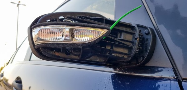A mosóprogram ciklusának végéhez közeledve a körkefék az A-oszlophoz értek, reccsenést hallott a jobb oldalról. A hang az utastérben a zaj ellenére is jól hallható volt. A mosás befejeztével a Mercedes gazdája észrevette, hogy a jobb oldali visszapillantó tükör burkolatának egy része, egészen pontosan a visszapillantóba épített indexhez tartozó plexi takarás hiányzik. A forgó kefe sörtéi beleakadhattak a tükörházba, és egyszerűen meghámozták.