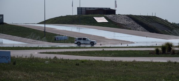 Miután lecsihadt a villanyos lelkesedés, jöhetett a lejtős hajtűkanyar modul. A feladat a klasszikus téli rémálmok kezelésére készít fel, amikor a havas-jeges domb aljában kellene bevenni egy csúszós kanyart. Vagy bárhol máshol. Ha nem rémlik a feladat a vizsgáról, akkor az azért lehet, mert nem volt követelmény. Menj csak, gyűjtsd a tapasztalatokat élesben, elvégre saját kárán tanul az ember.