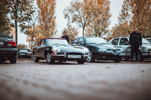Na jó, azért az apa-fia párossal beguruló E-Type kabrió hosszú pillanatokra ellopta a showt. A britek ikonja épp egy 156-os Alfa és egy korosodó Civic szomszédságában sütkérezett az elismerő pillantásokban; azt hiszem, azon a pár négyzetméteren valóban külön világok találkoztak.