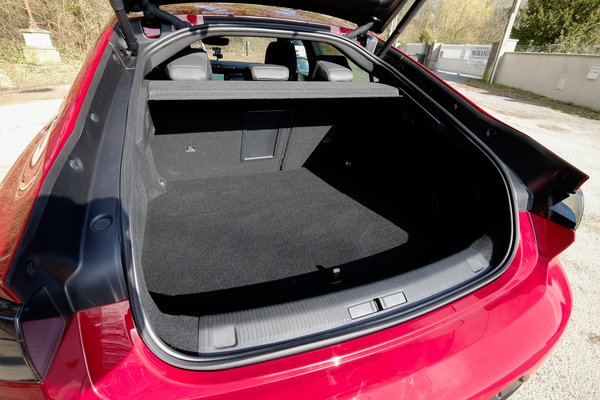 Szűk, hát persze, hogy szűk, a lehengerlő belső design is sok helyet foglal, a befelé dőlő tetők, a vállas karosszéria sem a helykínálatra optimalizáltság mintaképe. De a csomagtartó azért bő 500 liter (a kombié még nagyobb), s a szorosra tömött csomag ellenére ebből is lesz rövidesen hibrid, sőt, ha várunk, még villamos kivitel is.