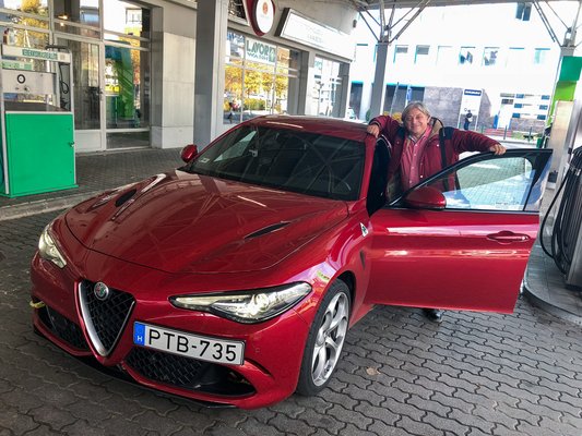 Kétnapos tesztre kaptam egy Giuliát. Az első nap Badár Sándor humoristával autóztunk a pilisi hegyekben, második nap a Pannónia-Ringre vezettem.