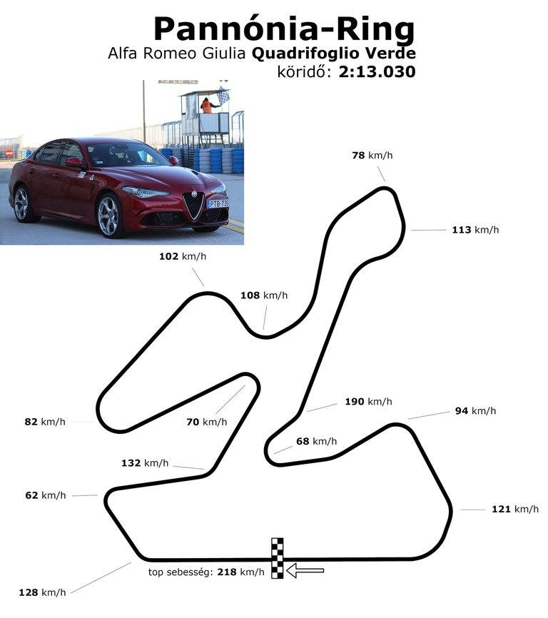 Az Alfát levittük Ostffyasszonyfa mellé, a Pannónia-Ringre is, hogy megmérjük, mit tud a pályán. Jelentem, a leggyorsabb négyajtóst a Nürburgring után a Pannónia-Ringen is Alfa Romeo Giulia QV-nek hívják, 2:13-as idővel!