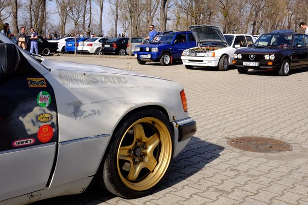 A részleteiben agyoncukult MX-5-is a lila pókháló-felniken. A makulátlan, helyből OT-képes, újszagú kocka 1500-ös Lada, amivel nyolc éve versenyez a tulajdonos. A káprázatos, négy keréken légrugós, Lorinser-felnis, AMG-kötényes 500 SEL (W126) Mercedes, amiben akkora hely volt hátul, hogy Macsuga Janival jóízűt kalimpáltunk benne. Ösztönösen. A káprázatos állapotú, robbantott gumis, célkereszt fényszórós, Golf kabrió-műszerfalas VR6-os, amit részleteiben kellett nézegetni, hogy összeálljon az egész elmeháborodottság, ami mögötte van.