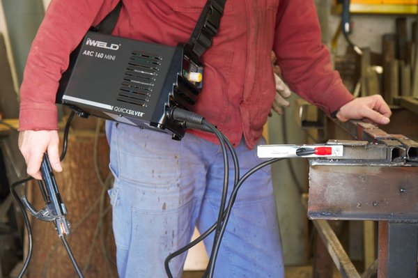 A dizájnra nem érdemes sok szót áldozni, egy hegesztőgép alapvetően nem szobadísz, teljesen rendben van. A szabályzó fölött egy pici LCD kijelző mutatja az áramerősséget, alatta pedig két bajonettzáras csatlakozó van a test és munkakábelhez. Kétoldalt van két fogantyúja a cipeléshez, a tetején pedig egy masszív, állítható vállpánt is, és mivel mindössze 4,7 kiló, könnyedén mozgatható. Zoli szerint, ha például létrán vagy állványon kell dolgozni, elég hasznos ez a pánt, így ez profi részről is jó pont az Iweldnek.