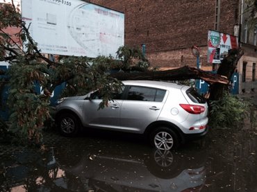 András a Honvéd kórházzal szomszédos utcában, fizető parkolóhelyen hagyta mindössze kilenc hónapos, újként vásárolt Kia Sportage 1,7 CRDI terepjáróját egy augusztusi kánikulai napon. Az autó egy akácfa tövében, árnyékben állt, és míg András ügyeket intézett vihar kerekedett, erős széllökésekkel. A szél olyan erős volt, hogy az akácfa derékból kettétört, és jobb oldalról az autó tetejére dőlt.