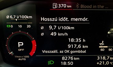 Ha a fájdalom okán visszafordítjuk tekintetünket a műszerfalat helyettesítő képernyőre, ott a fedélzeti számítógép nagyon érdekes menettörténeti adatokkal vár minket a "Hosszú időt. memór." fejléc alatt. Értem én, megint ez a kegyetlen 20 betű lesz a gond. Bárcsak a "Hosszú távú memória" 19 lenne. Oh.