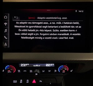 Értem én, hogy a mozgáspályát ellenőrizni kell, azt kívánjuk mondani. Mer' az ellenőrizetlen mozgáspálya, az nagyon rossz dolgokra képes. A minap is megírta az újság, hogy egy ellenőrizetlenül maradt mozgáspálya végett akkora tényállás került jegyzőkönyvbe vételre, hogy a fal adta a másikat. Azt is értem, hogy a magyar Audinál nem tehet senki arról, hogy a kegyetlen anyavállalati felülettervezők és UX-esek döntése miatt csak 20 karakter jutott erre a figyelmeztetésre az egyébként tévé nagyságú kijelzőn. Ilyen van.