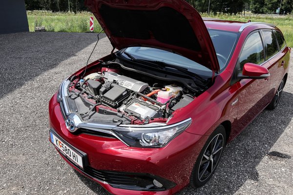 Az előző generációs, 136 lóerős kombinált teljesítményű hajtásrendszer, a 99 lóerős 1,8-as, Atkinson-ciklusú motorral és még NiMH akkukkal teljesen megegyezik az utolsó 136 lóerős Priuséval. A ma is forgalomban lévő generáció a kisebb villanymotorok miatt már csak 122 lóerős kombinált teljesítményű, és a kevésbé robosztus, ám rugalmasabban tölthető Li-ion aksikkal szerelik. A mi Aurisunk azonban nem egy Prius-féle űrkomp. Hagyományos műszerfal, normális kezelőelemek, csak a menetkapcsoló karja egyezik a műszerfalon a Priusszal. Mivel az aksik a hátsó ülés alatt vannak, a csomagtartó is hatalmas, csupán a hátsó ülésekre nem ültetném szívesen saját magam. A gyerekeknek még a hatalmas Isofix-es székekkel is elég nagy, ülésmagasítóval, majd anélkül pedig még kényelmesebben elférnek majd.