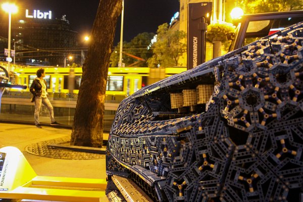 A végén büszkén pózoltak egyet a Chironnal a sárga munkavédelmi kobakos srácok, aztán targoncára pattantak, és huss. Csak a mostanra már sok tízezer kilométert utazott, de csak párat futott, sokat látott gigantikus játékautó maradt ott hajnali fél háromkor, meg egy marék cseh legós, akiknek az volt a feladata, hogy a leszerelt és időközben lepotyogott elemeket, alkatrészeket a helyére tegye.