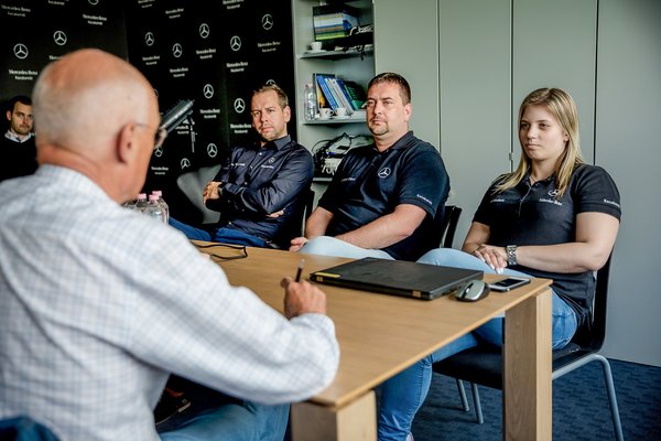 Az első kivételt a kecskeméti Mercedes-gyár, hivatalos nevén a Mercedes-Benz Manufacturing Hungary Kft. vállalta be. Ehhez még a gyárigazgató jóváhagyása sem volt elegendő, rá kellett bólintani Stuttgartban is. Mindenütt fantáziát láttak az újszerű témában, kigyulladt a zöld fény. A színfalak mögé pillantáshoz természetesen fel kellett szabadítani kulcsembereket tulajdonképpeni feladatuk, a gyártás működtetése alól, hogy beavathassanak a részletekbe. Mindenki készségesen segített – köszönjük.