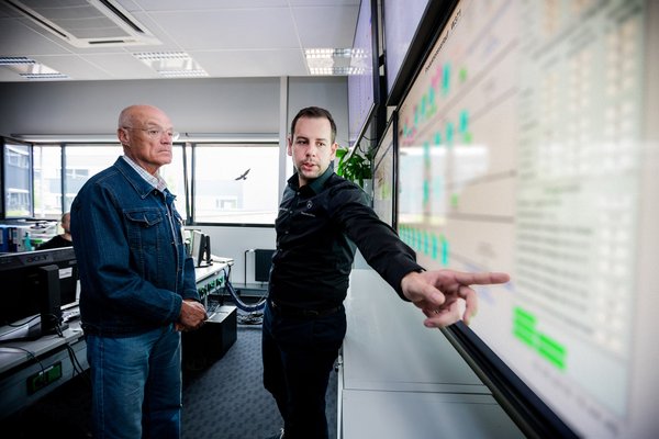 A már említett kezelőpultnál egész falat elfoglaló hatalmas monitor folyamatábrája tájékoztatja minden mozzanatról (ezt nem mutathatjuk meg képen, mert gyártási titkok lennének leolvashatók róla). Amint homokszem kerül az óraműbe, például elromlik egy robot, elakad egy percre pontosan várt kamion, vagy nincs például készleten elegendő AMG-felni, a számítógép hibajelzést ad, és az illető kocsit kiveszik a gyöngysorból, majd később újrakezdik rajta a munkát, természetesen a termelő területek restrikcióinak betartásával.