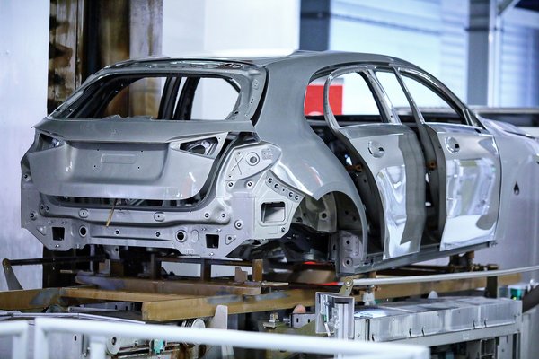 A karosszériaváltozatokkal egyszerű a helyzet, mivel mindegyik Kecskeméten gyártott A osztály ötajtós. Mégis az AMG-variánsokkal együtt összesen 66 karosszéria-szín kombináció létezik. Mónika karosszériája már az ő kódszámával azonosítva, egy tetőablak nélküli, normál kivitel lesz, a karosszériaüzemből kikerülő darabok közül. Ám mégsem biztos, hogy végül ebbe az üres acélszerkezetbe építik bele a specifikáció szerinti tételeket, mert a nyers karosszériák egy puffer-raktárba kerülnek, ahonnan bizonyos várakozási idő után, megfelelően sorba állítva indulnak neki a fényezőüzemnek. Alvázszáma ilyenkor még nincs a karosszériának, csak egy mindenféle hatást elviselő azonosító papír lóg róla.