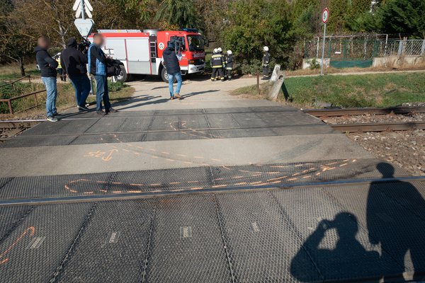 Az október 15-i helyszínelés több mint egy órával az ütközés után még javában tart. Feladatra várnak a tűzoltók, a vasútbiztonsági szolgálat emberei ellenőrzik, nem sérült-e meg a pálya és a jelzések, a közszolgálati tévések felveszik a vágóképeket a híradóhoz, a rendőrök pedig biztosítják a helyszínt. Fél órával utánam érkezik a halottszállító is, miután a mentősök sikertelenül próbálják újraéleszteni az autóst.
