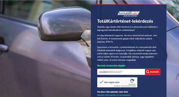 2: Az alvázszám alapján lefuttatja a TotálKáron a keresést - ingyen
