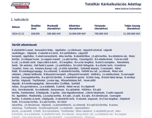 Ha van kárszámítási adatunk, akkor lekérdezheti, hogy mit tartalmaz, ez 3990 Ft.