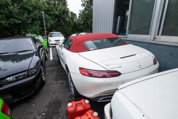 A ház mögött, a kis részen levő elfekvő végképp nagyon érdekes. Egy sorfalnyi kuncsaft-autó mögött, amelyek elvitelre várnak, egészen másféle kocsik laknak, hozzájuk képest itt szinte szabványosnak tűnnek a Suprák, Skyline-ok és Róótárííí! Macüdák.