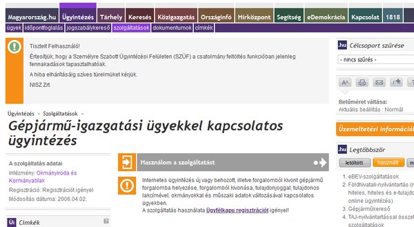 - az új felület sem barátságos. Legalább a leggyakoribb ügytípusokat ki lehetne emelni, hogy közvetlenül elérhetők legyenek az oldal tetején, egy kupacban, minden struktúra nélkül. Évi 600-700 ezer használt autót kell átírni egy évben, nem? Vagyis kétszer ennyi ember akar ügyintézni, a vevő meg az eladó. Vagy tényleg az a szempont, hogy minél többen várjanak az okmányirodákban? Netán ti is a kattintásszámra mentek?