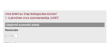 És amikor odaérek, hogy „Tovább”, mi történik? Nem enged tovább, hanem közli velem az oldal, hogy „A járműnek nincs üzembentartója”. Tudom baszki, nem is volt. Van egy eladó, meg a vevő, mit kell állandóan átkeresztelgetni?