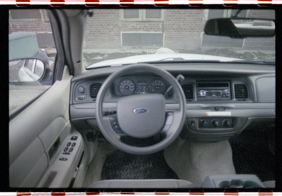 A Crown Vic beltere is nagyon amerikai, ha nem lenne a kormány mellé szerelt nagy váltókar, akkor is azonnal megmondja bárki, hogy jenki autóban ülünk. Kicsit sem lepett volna meg, ha az ülés szivacsa elmállott volna, átlyukadt volna a kárpit, lötyögnének a kapcsolók, minden eresztékében zörögne az autó. Hiszen van benne bő 151 ezer mérföld - pontosabban minimum ennyi, mert a műszerfalnak van egy típusbetegsége, időnként elmegy szinte minden funkciója, ilyenkor nem mér sem a kilométer(mérföld)számláló, se az üzemóra számláló. Mert hogy van ebben az is, hiszen gyakran csak az út szélén ketyeg a gép, ugrásra készen várja a radarcsapdába eső gyorshajtót, hogy bő gázzal, meg az összes fények és hangok felkapcsolásával utána eredhessen az officer. És az egy helyben járó, a járőr munkahelyét fűtő vagy klímával hűtő motor is dolgozik, ezért aztán az üzemórát is számolja, tehát a minimum 241 ezer kilométeren felül még alapjárt vagy 2716 órát.