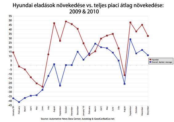 A válság első évében a Hyundai globális eladásai 2%-kal, a bevételei 5%-kal, piaci részesedése pedig 0,7%-kal nőtt annak ellenére, hogy a kezdetben sikeres Excel minőségbeli, khm, hát... hiányosságai erős foltot ejtettek a márka USA-beli megítélésén. Erre válaszul az ezredfordulótól kezdve nagy hangsúlyt – értsd: pénztpénztpénzt – fektettek a kutatás-fejlesztésre, de főleg a gyártástechnológiára, s ennek eredményeképpen a Hyundai, hah, a Hyundai a Genesisszel 2009-ben Év Autója-díjat tudott nyerni az USA-ban, Kanadában és Kínában, sőt az iparági sztenderd 3 év/30 000 mérföld garancia helyett 10 év/100 000 mérföldet merészeltek kínálni.