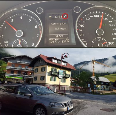 A mi státuszunk az egyik váltó-fél működésének elvesztése volt, tehát az előre 2/4/6 megszűnt, és sajnos a hátramenet is, amit már nem tudtam elpókerezni, egyesült erővel állítottuk be a német tankot menetirányba. Mivel a célállomás közelebb volt, mint az otthonunk, továbbá két és fél napunk maradt nyaralni, nem volt kérdés, hogy folytatjuk utunkat, hiszen a nagy test ugyanúgy vitte a százharmincat mint eddig, csak a pályáról letérve kellett manuális állásban lavírozni a megmaradt fokozatok között. Hallstatt után kicsivel egy hegyi falucska főterén egyszerre eltűnt a hibajelzés, a rendszer hibátlannak ítélte a váltót. Pont a szállásunk előtt bátran hátramenetbe kapcsoltam tehát, de magabiztosságom másodpercek alatt tovaszállt, mikor egy erőteljes fogaskerék-hang után a villáskulcs visszatért, és az erőátvitel kompletten megszűnt úgy, ahogy volt. Egy tágas, bőrhuzatos, kézzel tologatható gardróbunk lett pálcasuhintásra, egy eldugott osztrák szegletben. Sőn und űberkirály.