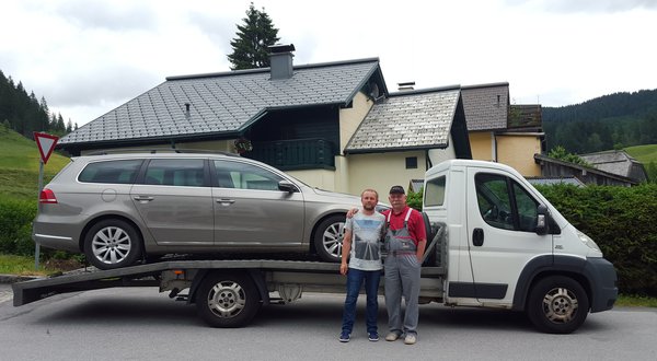 Szerencsére az elkóborolt fiú apja ismét készen állt arra, hogy a hülye kölykét megmentse, ahogy tette huszonkét éve is. Neten szereztem egy bérelhető autómentőt, így egy napunk maradt kirándulni, hegyikecskét simogatni és helyi borokat kóstolgatni. Másnap megérkezett a felmentősereg, szerencsére apám is atomhajtású és az az igazi kalandor fajta: a targoncától a teherautón át a repülőgépig mindent vezetett már, a Fiat Ducato autómentő csak hab volt a tortán, a százas sebességlimit mondjuk fájdalmasan alacsony, de a biztonság az első. Felpakoltuk a hálátlan, döglött német tehenet a platóra, és húztunk is haza a pályán. Igazi csapatépítő tréning volt ez, azért legközelebb inkább hegyet mászunk mindannyian. Akkor a Die Scheisse Getriebe megnevezést tulajdonítottam a DSG rövidítéshez.