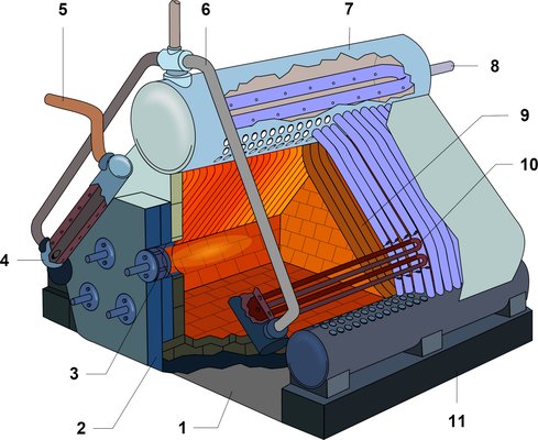 A kazánokban fejlesztett gőzt nem csak a turbinák használták, desztilláltak vele tengervizet, amit aztán felmelegítettek mosdáshoz, és áramfejlesztésre is szükség volt, igaz, ezt részben dízel generátorok végezték. Az 1920-as években tervezett, Admiralitás-féle három tartályos kazánban két víztartály van alul, a gőztartály pedig fent középen, az így megrajzolt háromszög közepén ég az olaj. Bonyolult és nagy szerkezet, de meglepően hatékony, egy ilyen méretű cirkálónak korábbi kazántípusokból akár 8-10-re is szüksége volt. A fűtők ugyan nem lapátoltak, de úri dolguk sem volt azért, például mert az ő munkaterükön keresztül látták el levegővel a kazánt hatalmas ventilátorok. Ha kint hideg volt, akkor fáztak, ha meleg, akkor szauna hőmérsékletűre hevült a hajó egyik legalsó terébe zárt fűtők munkaterülete.