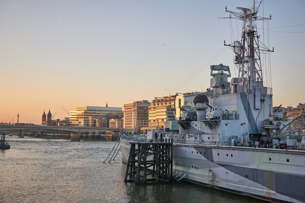 A hadihajók között lehet, hogy nem számít nagynak ez a 187 méter hosszú cirkáló, de a Temzén, a Tower Bridge közelében kikötve eltörpül mellette minden, ami a folyón mozog. Belépéskor lehet fotókkal és személyes történetekkel teli könyvet venni, illetve audio guide is van, de az egyes pontokon táblák, képek, hanghatások és video bejátszások magyarázzák hogy mit látunk, tehát egyik sem kötelező. Van kijelölt útirány a fedélzeten, de akadnak átvágási lehetőségek is, ha valamit kihagytunk volna, vagy visszamennénk. És sehol egy teremőr néni, hogy kezünkre csapjon, lehet bámulni, közel hajolni, fogdosni akár, sőt diákcsoportok a fedélzeten alhatnak, megfelelő szervezéssel. Hiszen amit úgy terveztek, hogy kibírjon egy nehézcirkáló találatot, azt csak nem kapja szét pár rosszcsont kissrác?