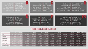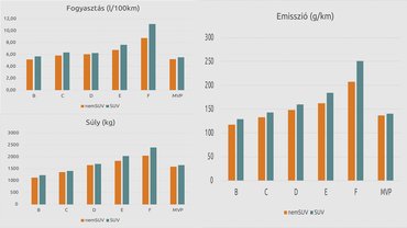 Egy alap Citroen C1 esetében ez hat tonna, míg egy kimaxolt Land Rover Discoverynél harmincöt. Az emisszió/fogyasztás kérdésében meglepetést egyébként nem fogunk találni, a nagyobb homlokfelület és a nagyobb súly átlagban 8 deci és 1,7 kiló különbséget eredményez az alacsonyabbak javára. Szerzői megjegyzés: az emissziós és fogyasztási adatok felfejtése nem egyszerű: a gyártói oldalakon nemritkán két-három adat is szerepel, ami elvileg az NEDC és a WLTP mérési adatok különbségéből adódnak, ez viszont azért visszás - például a Volkswagennél - , mert miközben az elavult mérési ciklus számai újra és újra a kuncsaft arcába vannak tolva (főoldalon, konfigurátorban), addig a valóshoz közelebbi (tehát rosszabb) értékek egyszer, egy kíváncsi/szkeptikus kattintás után érhetők csak el.