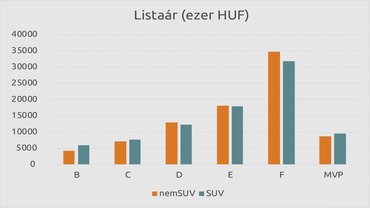 A grafikonon látszik, hogy az szabadidőautók az alacsonyabb szegmensekben drágábbak, fentebb viszont olcsóbbak hagyományos társaiknál. Miközben méretben többet nyújtanak. Ez gyakorlatban azt jelenti, hogy a gyártók nem állítanak konkurenciát a már meglévő modelljeiknek, hanem alattomos fortéllyal a hagyományos szegmenseik közé fűzik be a SUV-okat (olykor akár már meglévő kombik helyett). Nahát.