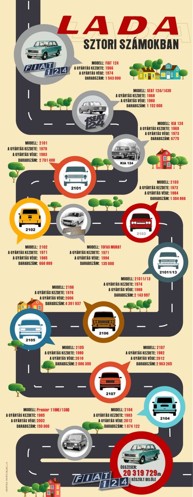 Mindezekkel együtt a 2101-es típus és az abból kisarjadó változatok alapvetően változtatták meg a kelet-európai automobilizmus képét. Különösen igaz ez a Szovjetunióra, és a VAZ legnagyobb exportpiacára, Magyarországra, ahová 25 év alatt egymillió Lada érkezett. Közel 17,5 millió eladott példánnyal a hátsókerekes Lada a mai napig az automobilizmus történetének második legnagyobb példányszámban gyártott modellje. Ha ehhez hozzáadjuk a többi Fiat 124-licencet, az adat felkúszik 20,5 millióra. Így a Bogár még megtarthatja a trónját, bár tegyük hozzá, annak gyártási periódusa hosszabb volt. És míg az első és utolsó bogárhátú VW alkatrészei között talán egy alátét sem egyezik meg egymással, addig az 1970-ben összeszerelt első 2101-es alkatrész-katalógusának jelentős része azonos az utolsó, 2012-ben az izsevszki sorról egy szomorú és méltatlan esemény keretében legördült 2014-esével.