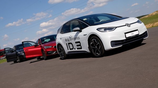 Az In-Mobility nevű rendezvényre pedig a Porsche Hungária elhozta a teljes jövőbe mutató tesztflottáját, e-Golfostul, hibrid Seatostul, Audi e-tronostul mind. A koronaékszer pedig a Volkswagen ID3 volt, a Golfnál nagyobb, Passatnál kisebb villanyautó, amelyet Zwickauban, a Trabantok régi gyárában készítenek, ráadásul karbonsemlegesen. Ez elég komoly esélyes a 2021-es címre, valljuk be.
