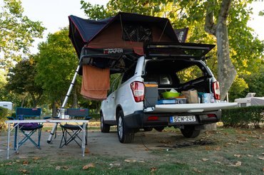 Mikor felkerült az autóra, az addig se rejtőzködő Ssangyong Grand Musso igen látványos jelenség lett. Folyamatos volt az érdeklődés, a kempingben körbefotózták, kérdezgettek. Ennek csúcspontja az M7-esen történt egy dugóban csorogva, amikor a másik sávban lassanként mellém érő FJ Curiser-tulaj kollégával beszéltük meg menet közben, hogy mik a tapasztalatok a sátorral.