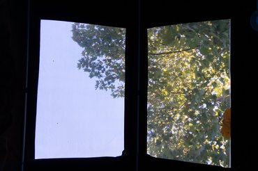 A kinyitott sátorban mind a négy irányba van ablak, itt az árnyékolók kitámasztásánál nem árt figyelni, hogy a rövidebb rudak tartoznak az oldalsó ablakokhoz. A bejárat és a vele szemben lévő ablak a sátor igen masszívnak tűnő anyagából kapott becipzározható lezáró elemet, míg az oldalsó ablakok sötétítése egy ráengedhető rolóval lett megoldva. Elég hatékonyak, a reggeli nap fénye tuti nem fog felébreszteni, ha bezárkóztál.