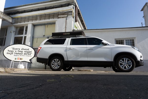 Mivel egy Ssangyong Grand Musso volt az áldozat, amire a sátrat feltenni terveztem, a csomag érkezésekor volt egy kis izgalom, ugyanis kiderült, hogy a cégnél elfekvő keresztsín nem éri át a pickup tetősíneit.