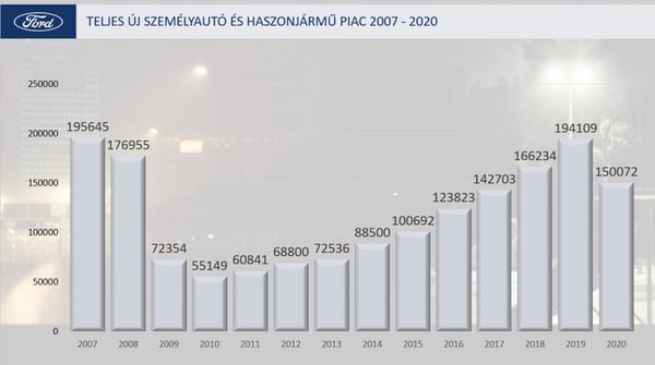Egy biztos: a Ford bizonyos szempontból jó helyzetben van, mert nagyon erős náluk a kishaszon-szekció, toronymagasan vezetik a piacot (31,9%), de a személyautókkal sincs baj, harmadikok. Ezzel együtt a magyar autópiac a 2017-18 közötti szintre állt vissza a világjárvány hatására, ami 22-23 százalékos visszaesés, de voltak ennél sokkal rosszabbul teljesítő országok: többnyire ott, ahol a kereskedéseket be kellett zárni, lásd még Nagy-Britannia, Csehország és társai.