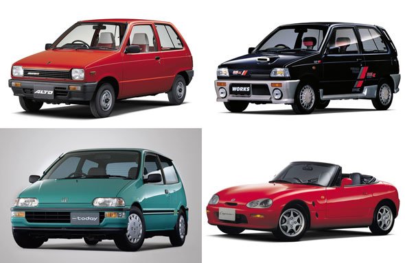 Az ötvenes évekkel borzasztó termékeny időszak következett, sorra születtek és haltak el a mikroautók, amik inkább voltak apró, motorbicikli-alkatrészekből összefércelt pattanások, mint valódi autók, de legalább vicces, japanizált angol márkanevekből nem volt hiány: Fürájjingü Fezá, mint Repülő Toll, Ótó Szándárü, mint Autó Szandál - rímeltek is az európai kuzin Citroën 2CV-re, amit guruló esernyőnek csúfoltak ugye. Az igazán korszakalkotó autók az évtized közepén jelentek meg, ám a japán megfontolt ember, fogyasztás előtt alaposan megkevergeti magában az újdonságot, mint az erjesztett szójababot (a nattót), szóval kellett néhány év a civil lakosságnak, hogy rákapjon a négy kerékre. Az elsőség a Lloyd 400-on alapuló Suzulight SF-nek jutott, ezt tartják az első valódi kei carnak, emellett a Suzulight volt a Suzuki varrógépeken és motorbicikliken túli első lépése is. A Subaru (Fuji Heavy Industries) a 360-at dobta piacra, ami a 425 000 jenes árcédulájával és bájos kinézetével rögtön verhetetlen pozícióból indult, neki az első tömeggyártott kei car cím jutott.