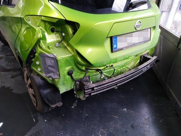Ezúttal az ország egyik legrégebbi nissanos műhelye, a Gablini vizsgálta át az autót. A hátsó lökhárító leszerelése után, szinte teljesen véletlenül vették észre, hogy az újszerűnek tűnő Micrát korábban nagyon összetörték. A karosszéria bal hátsó sarka kaphatta az ütést. Bár nagyjából helyreállították a lemezeket, kerül bontott lökhárítótartó konzol is, kihagytak pár csavart, de ennél is nagyobb baj, hogy a vázszerkezet továbbra is deformált. A munkafelvevő, Láda András szerint nem a gyári előírások szerint javították, hanem a legolcsóbb módszerekkel rángatták helyre a kasznit. Alábbiakat írja a Totalcarnak küldött levelében:
