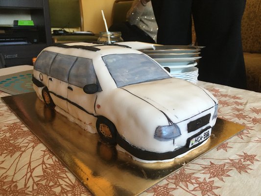 A tortánál már kezdett gyanús lenni a dolog. Erika hobbicukrász, és érzi az autós tematikájú tortákat, pár hónapja a Wunderbaum tortája is uralkodott, az F Astra kombi viszont új szintre emelte a művészetet. Nem csak a H-s rendszám, de az autentikusan elhelyezett rozsdafoltok is a téma alapos ismeretéről árulkodnak. Igen, a tankbetöltő is csipás.